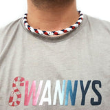Hockey Lace Necklace - White, Navy Blue and Red by Swannys